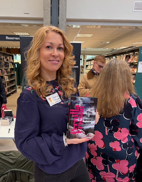 Marie hade åkt från Stockholm för att besöka deckarmässan. Henne hittar ni på instagram under namnet @marieinsweden. Hon har varit medlem i juryn för Crimetime Awars, Årets debut flera år i rad.